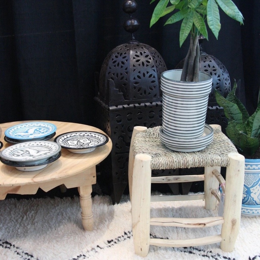 Traditional Moroccan Stool – Handcrafted Eucalyptus Wood