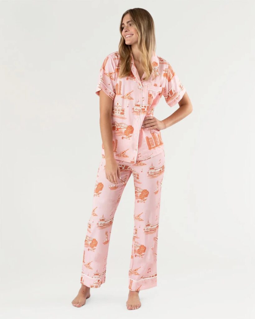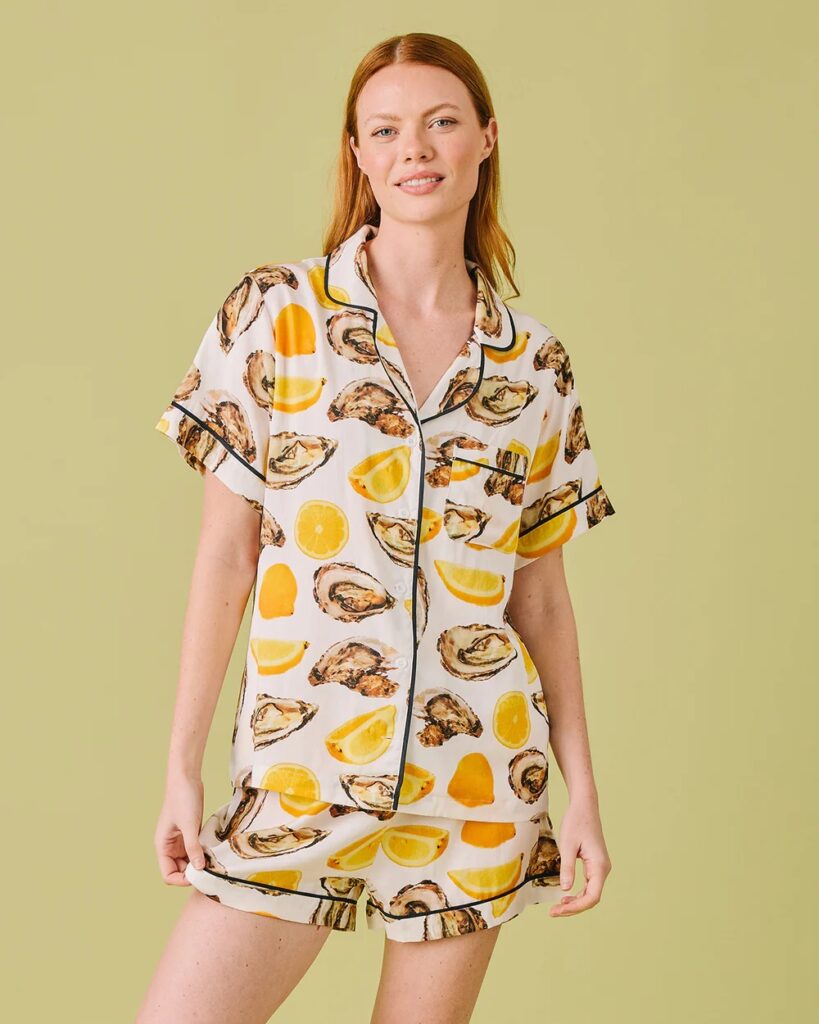 Added to your favoritesSelect options This product has multiple variants. The options may be chosen on the product page The World Is Your Oyster Pajama Collection – Shorts or Pants Set by Katie Kime$118.00