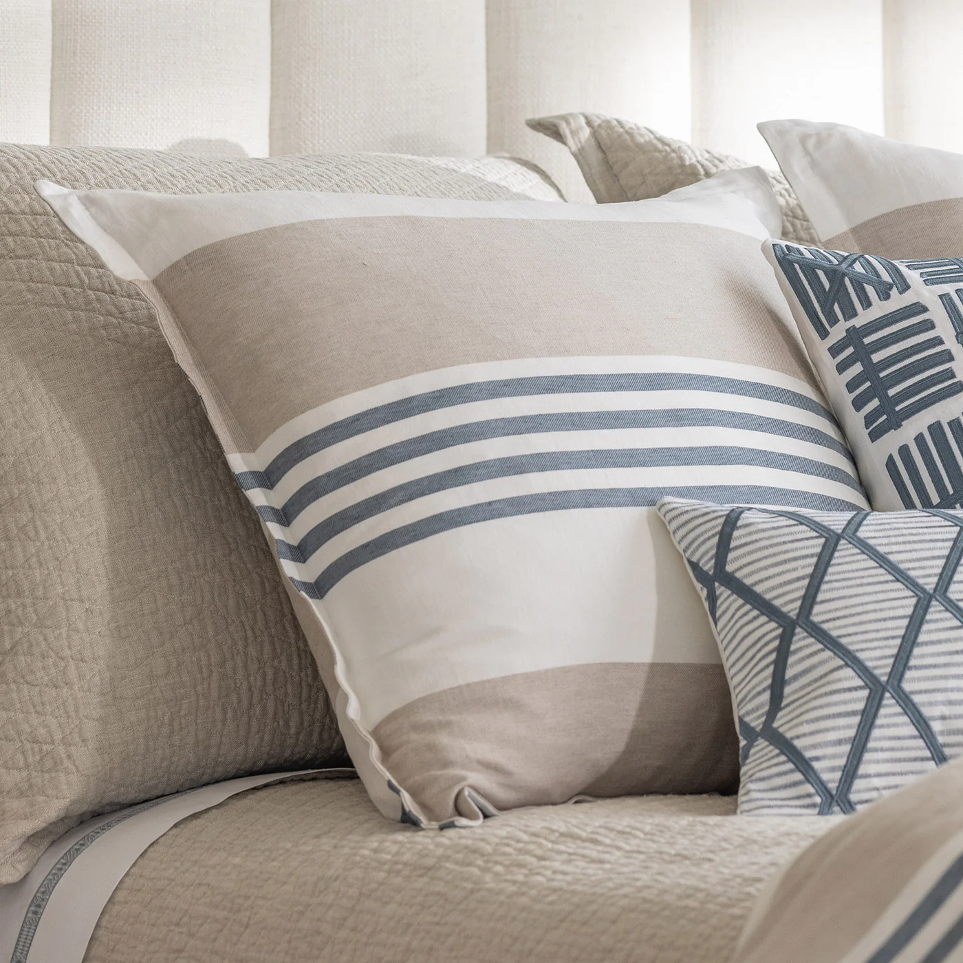 Classic and effortlessly tailored, the Newport European Pillow brings a refined coastal feel to the bedroom. Crafted from striped cotton linen in crisp white, natural, and soft blue tones, this piece adds subtle pattern and texture while remaining timeless. Designed to layer beautifully on a bed or accent seating, it offers both comfort and understated elegance.