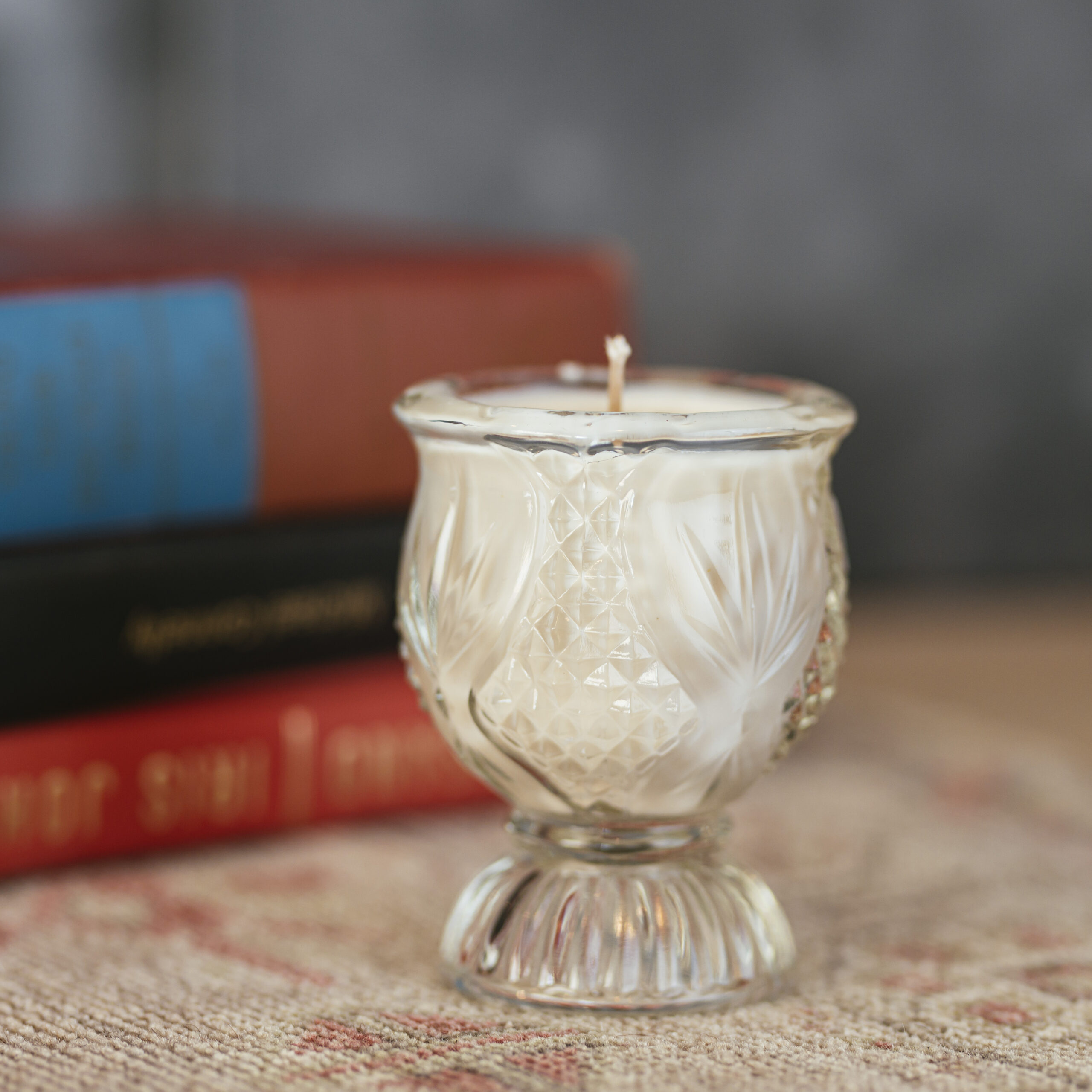 Natural variations in glass and finish are part of the candle’s handmade character.