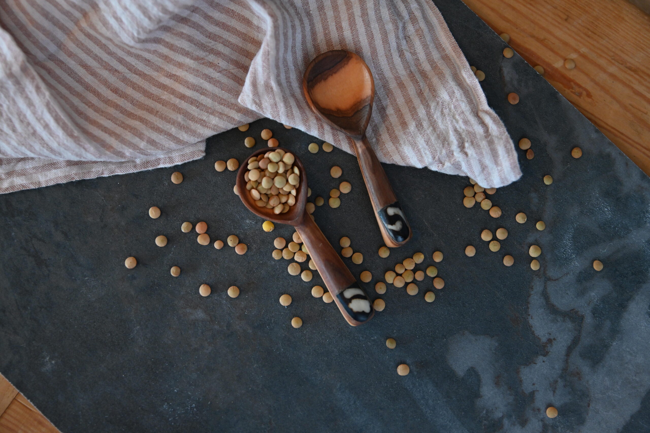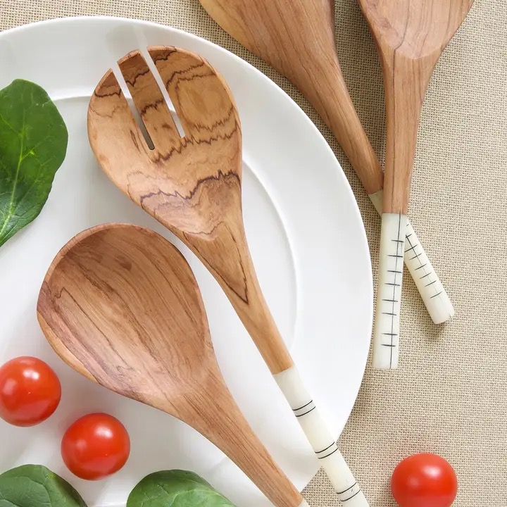 Hand-carved by skilled Kenyan artisans, our Wild Olive Wood and Bone Spice Spoons are the perfect touch for your spice collection. Made from stunning wild olive wood with a delicate bone inlay on the handle, these spoons add elegance and authenticity to your kitchen. The unique designs may vary, making each spoon one-of-a-kind and a special addition to your home.