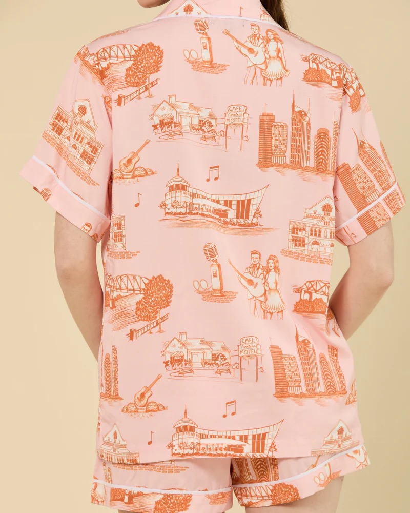 Unleash your wild side with the Cosmic Cheetah Pajama Shorts Set—a perfect combination of style and comfort. Inspired by our best-selling cheetah print and paired with a playful bubblegum pink, this set takes bedtime fashion to new heights. The cosmic allure of cheetah spots is highlighted by sophisticated navy contrast piping, making this set both bold and refined.