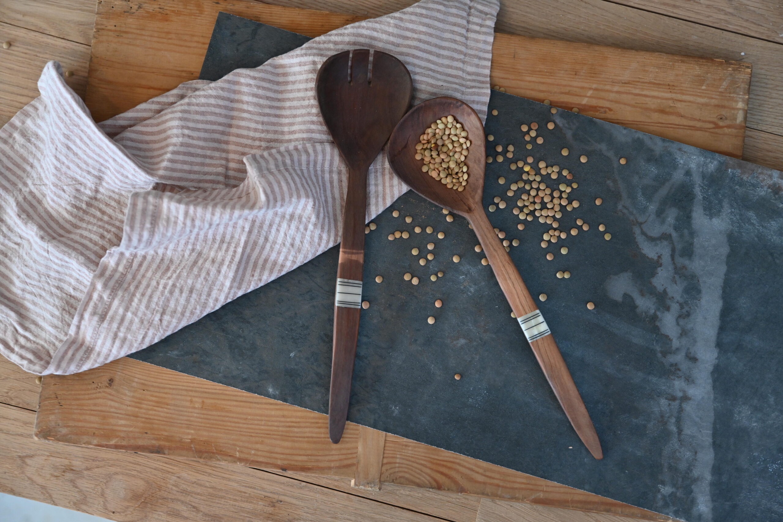 Enhance your dining experience with the natural elegance and durability of the Kenya Wild Olive Wood Kafi Paddle Salad Servers from Basil and Birch. These handcrafted salad servers bring a touch of rustic charm to your table while offering exceptional functionality for everyday use or special occasions.