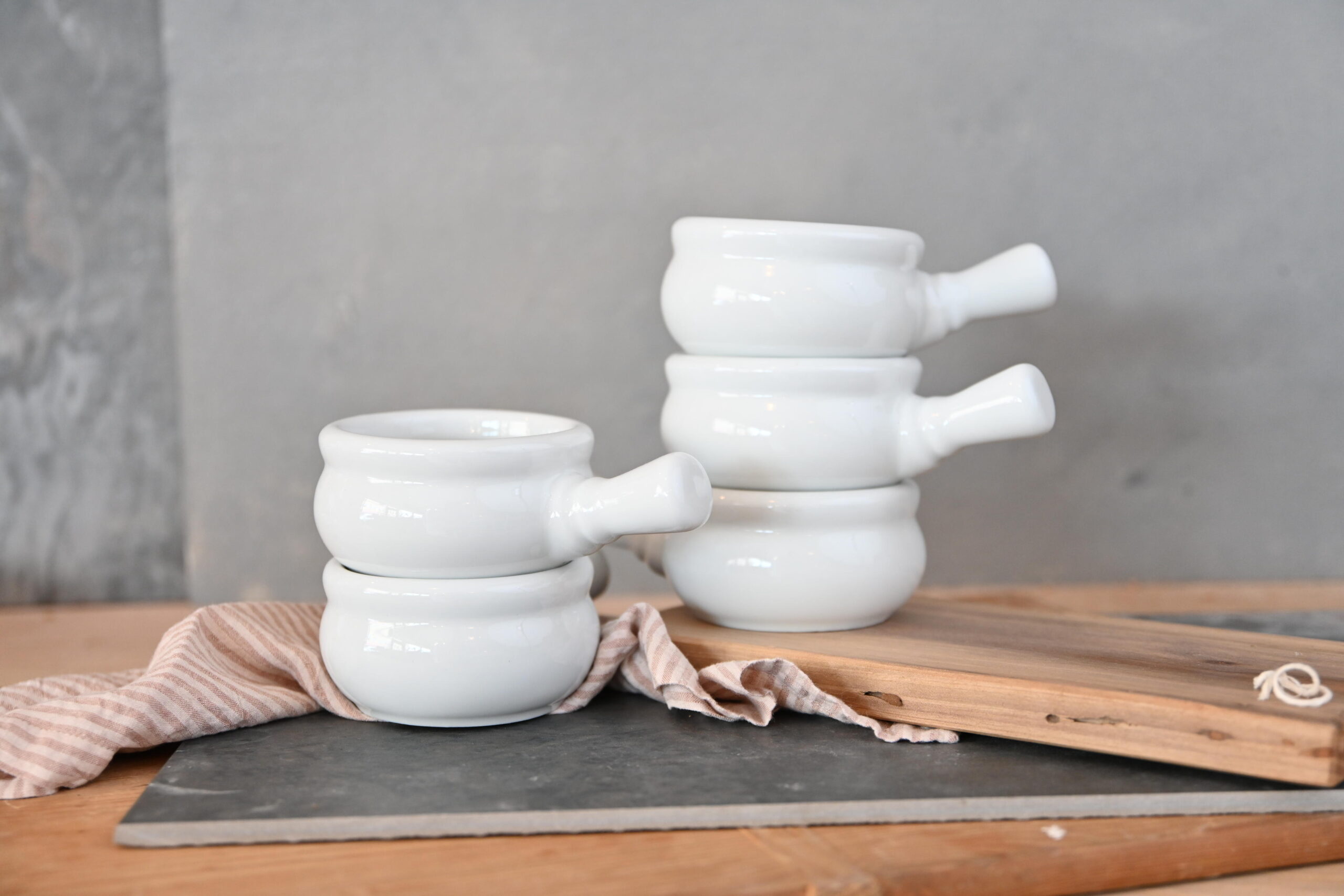 - Classic French Onion Soup Design: Rolled edge with a handle, ideal for serving French onion soup and other baked dishes.