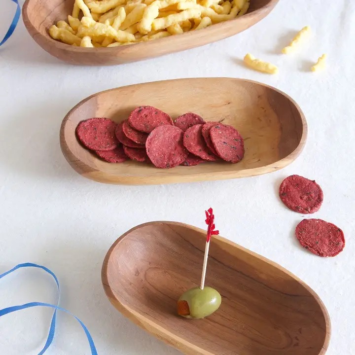 Serve in style with the Set of Three Wild Olive Wood Serving Bowls, handcrafted with care and available exclusively at Basil and Birch—a perfect blend of beauty and sustainability!