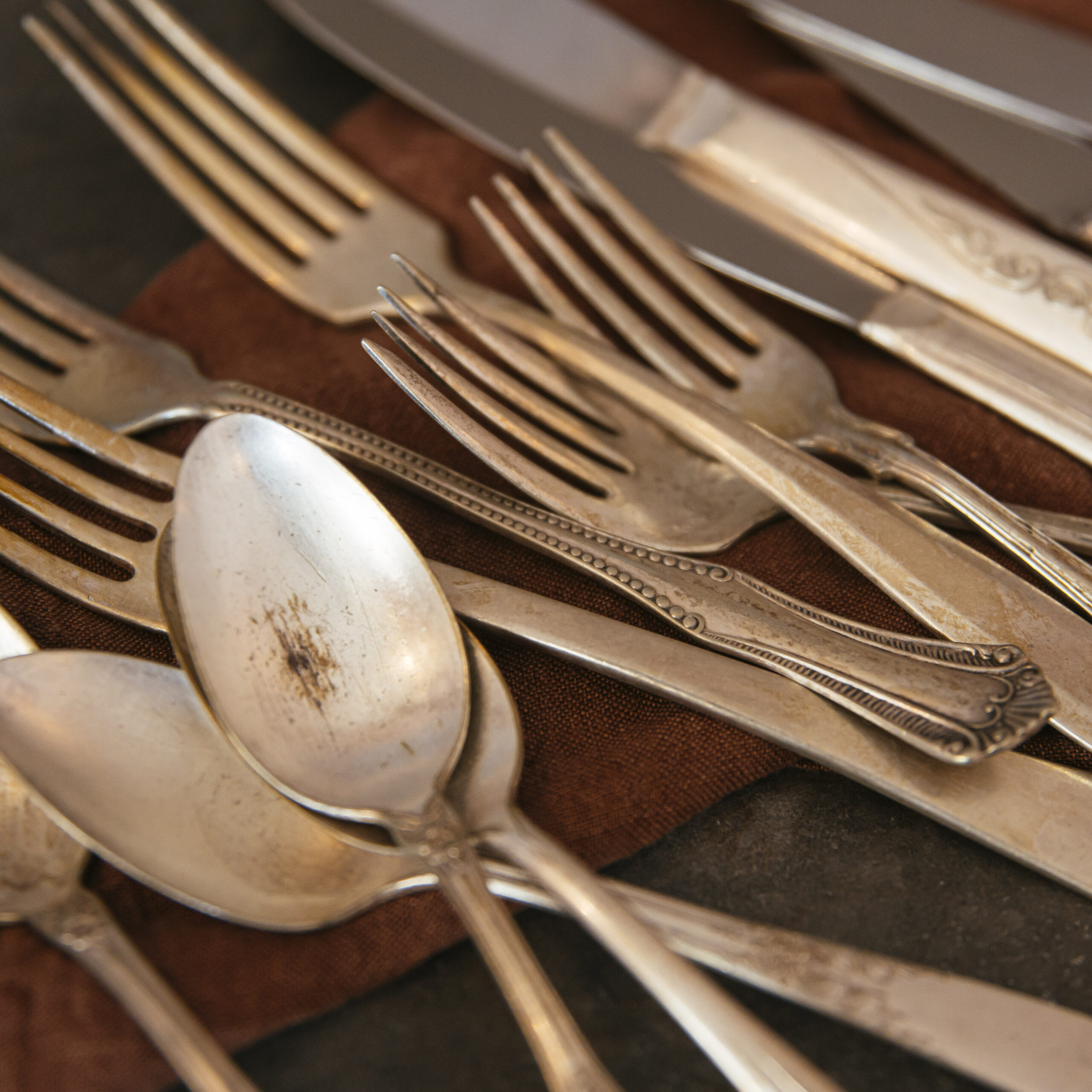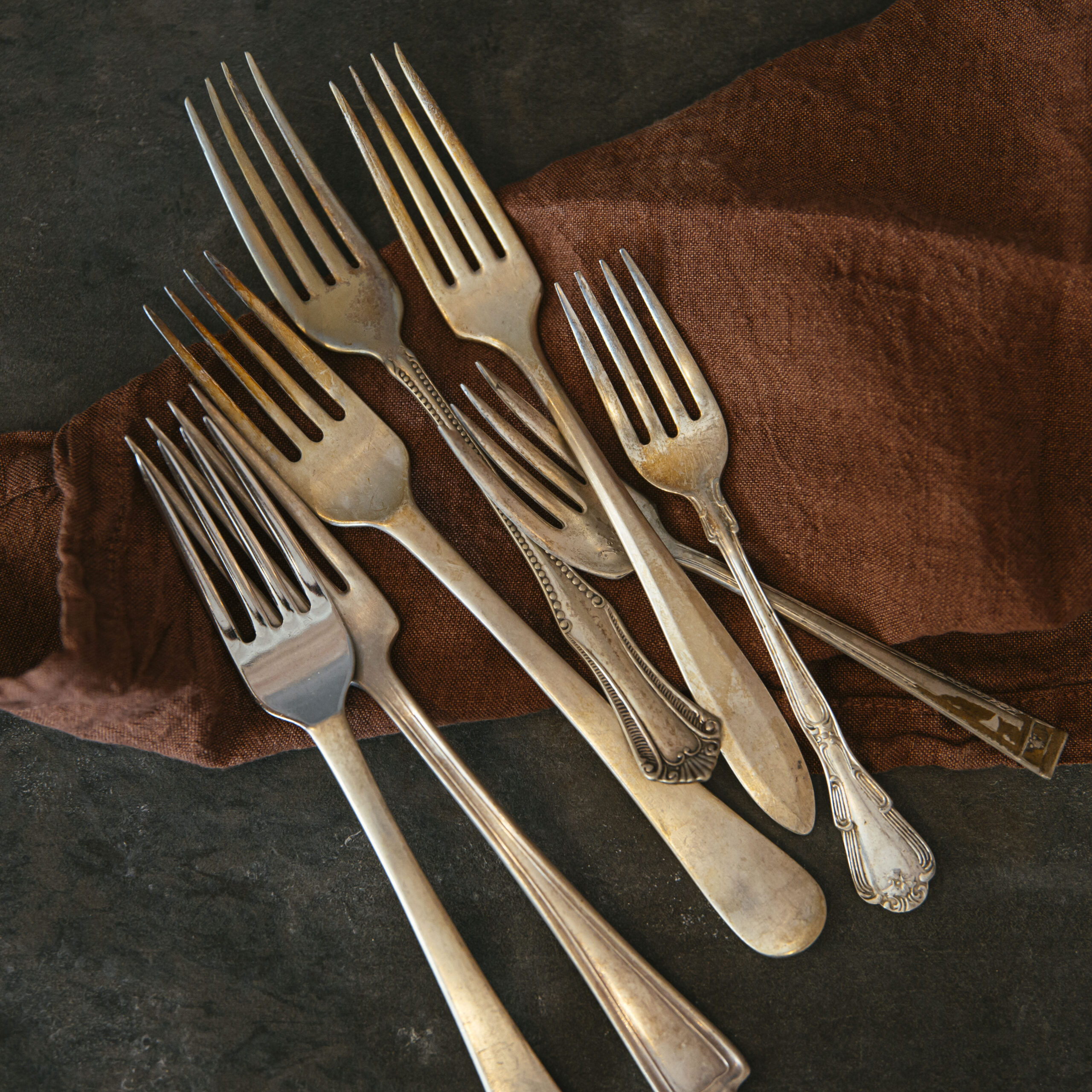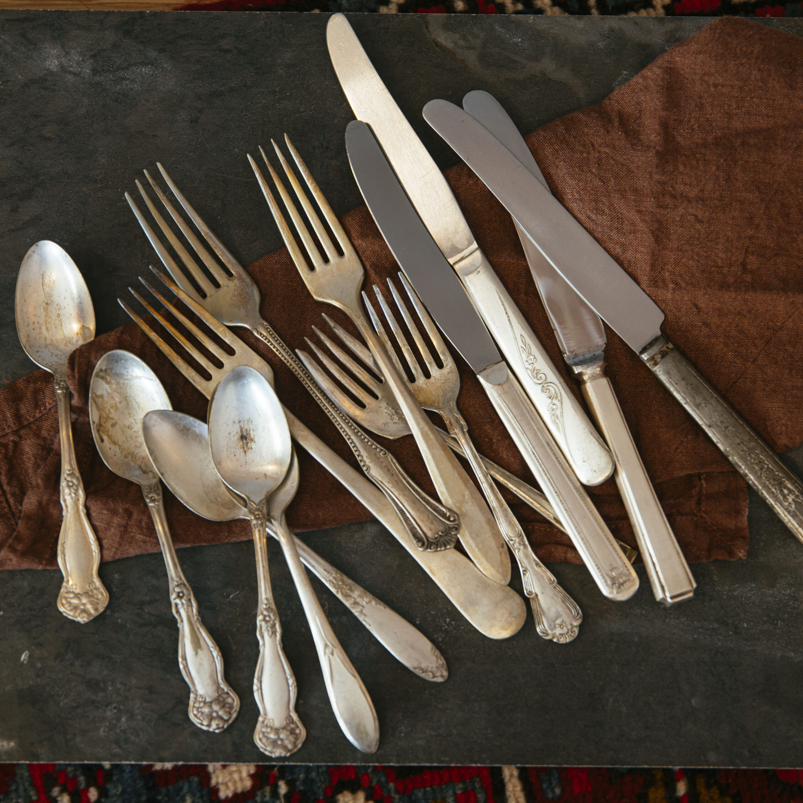 This vintage silverware brings a sense of quiet elegance to the table, defined by classic forms and timeworn detail. Each piece reflects everyday use and traditional craftsmanship, offering a collected look that feels both familiar and refined. Ideal for mixing into place settings, styling in drawers, or displaying as part of a tabletop vignette, these pieces add subtle character without feeling formal.